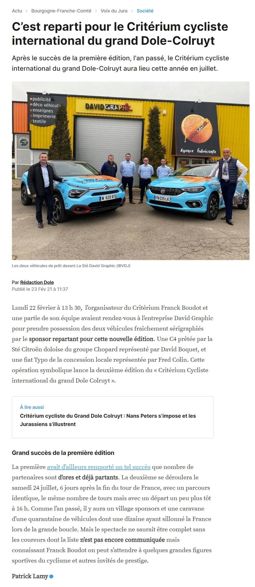 PRESS ARTICLE VOICE DU JURA OF 02/23/2021